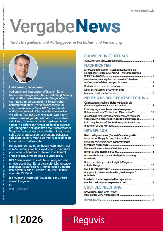 Erschienen in: VergabeNews, Januar 2026, 31. Jahrgang, Heft 1